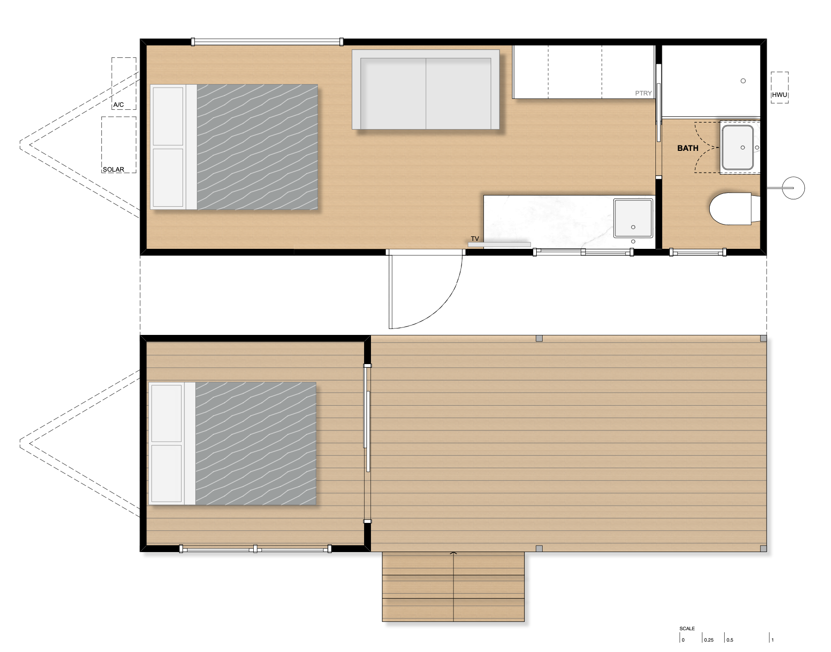 Introducing your entry-level Tiny Solar Home! This compact yet stylish design boasts full-height rooms and an open layout, allowing you to create your ideal space. Staying true to our vision, this affordable Tiny Solar Home is built to last.